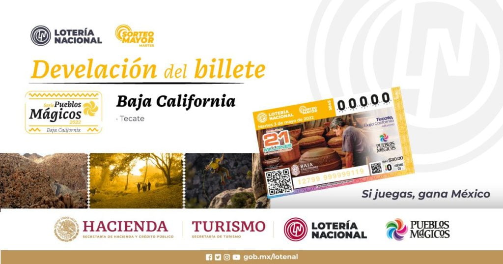 TECATE.- Como parte del próximo Sorteo Mayor de la Lotería Nacional, a celebrarse el 3 de mayo, la región de Tecate, Baja California será la imagen oficial del próximo billete de lotería y dará la vuelta en todo el país con los atributos turísticos y culturales más importantes de esta entidad, informó la Secretaría de Turismo del Estado (SECTURE).