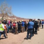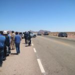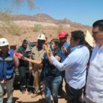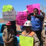 SAN FELIPE.- Trabajadores de la mina Frisco, propiedad de Carlos Slim, bloquearon de manera intermitente el flujo vehicular sobre la carretera Mexicali-San Felipe. Fernando Gaspar, delegado de la Confederación Revolucionaria de Obreros y Campesinos (CROC) y vocero de los mineros, dijo que la demanda es que las autoridades federal pongan atención a esta problemática laboral en la mina de cielo abierto y cerrado (socavones), donde se extrae oro y plata. El paro ya cumple dos semanas, y la Secretaría del Trabajo federal no ha tenido acercamiento alguna, a pesar de las denuncias, ahora estuvo representando al gobierno estatal de Marina del Pilar, el subsecretario de Gobierno, Daniel Gutiérrez Ornelas.