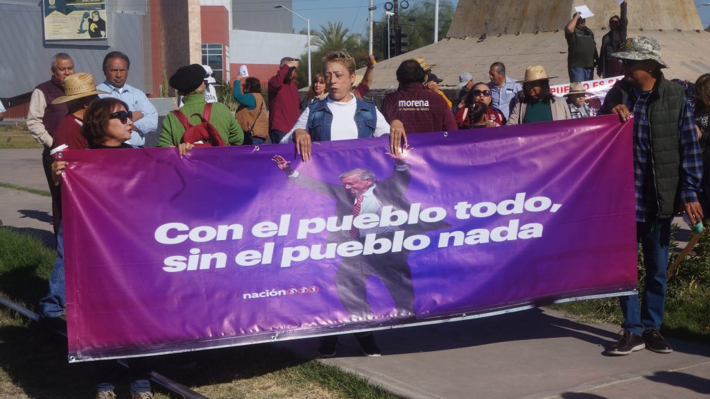 Así fue como ciudadanos de Mexicali, simpatizantes al presidente y a Morena, se congregaron en el monumento a Vicente Guerrero desde las 10 horas de este domingo. Lo que, posteriormente, se convertiría en una marcha que partió con dirección al Centro Cívico, o la Plaza de los Tres Poderes.