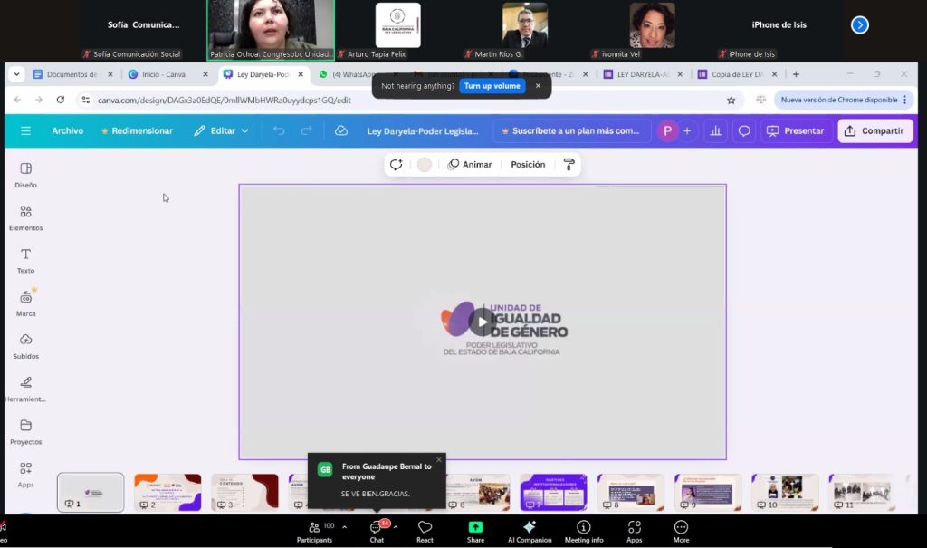 Durante su intervención, Patricia Ochoa, señaló que la recién aprobada Ley de Capacitación en materia de Género, de Prevención y Erradicación de la Violencia hacia las Mujeres para el Estado de Baja California, también conocida como “Ley Daryela”, establece la capacitación obligatoria de todas las personas servidoras públicas o que presten sus servicios profesionales al Estado de Baja California, con el propósito central de prevenir y erradicar todo tipo de violencia hacia las mujeres.
