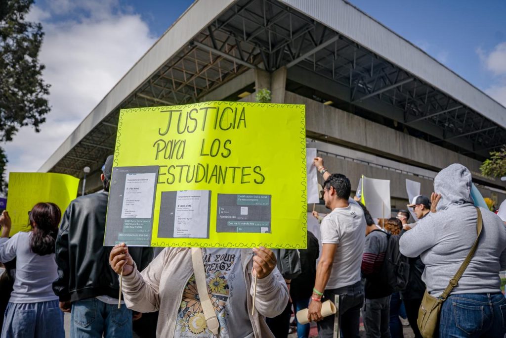 La protesta continuó con una marcha hacia las oficinas del Sistema Educativo Estatal, donde los afectados pidieron apoyo para continuar sus estudios y demandaron una investigación formal contra los responsables.
