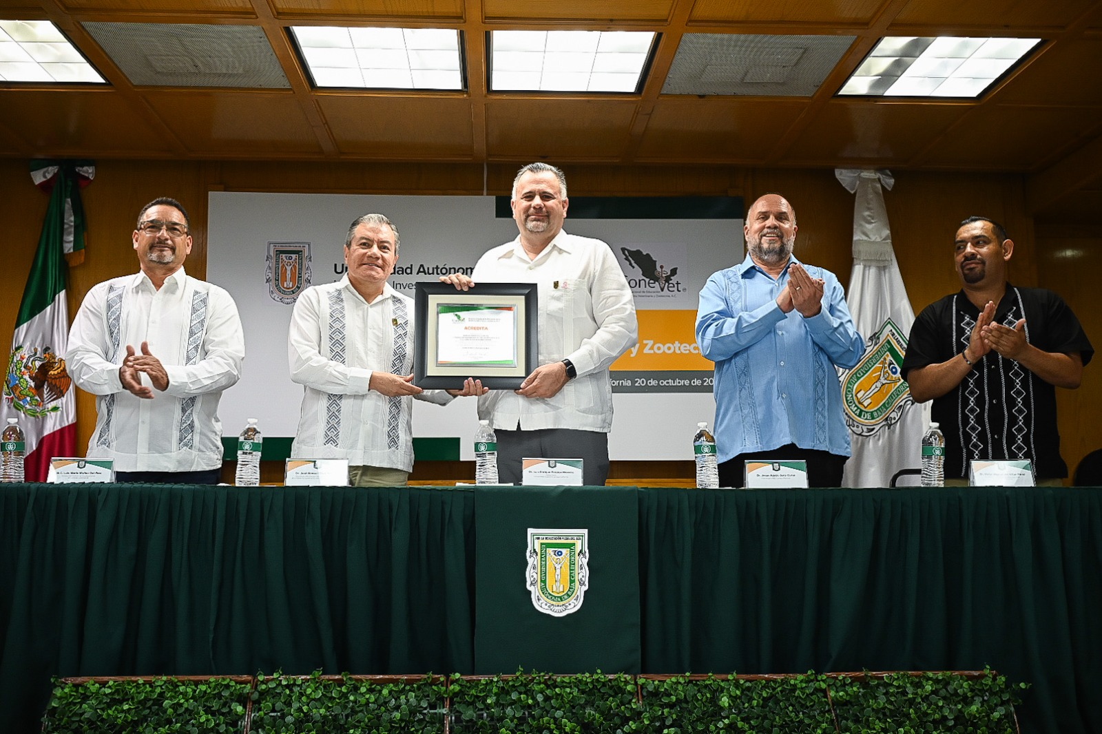 Mexicali, Baja California, martes 21 de octubre de 2025.- La Universidad Autónoma de Baja California (UABC) recibió la reacreditación del programa educativo de la licenciatura en Medicina Veterinaria y Zootecnia que se imparte en el Instituto de Investigaciones en Ciencias Veterinarias (IICV), otorgada por el Consejo Nacional de Educación de la Medicina Veterinaria y Zootecnia, A.C. (CONEVET), reconocimiento que reafirma la excelencia académica del programa y el compromiso de la institución con la formación profesional de calidad.
