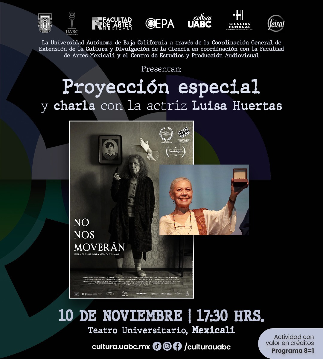 Con esta actividad, la UABC reafirma su compromiso con la sociedad al gestionar propuestas cinematográficas de reconocimiento internacional, así como la presencia de figuras como Luisa Huertas, y al promover el talento mexicano, brindando un espacio de encuentro para las y los amantes del cine.