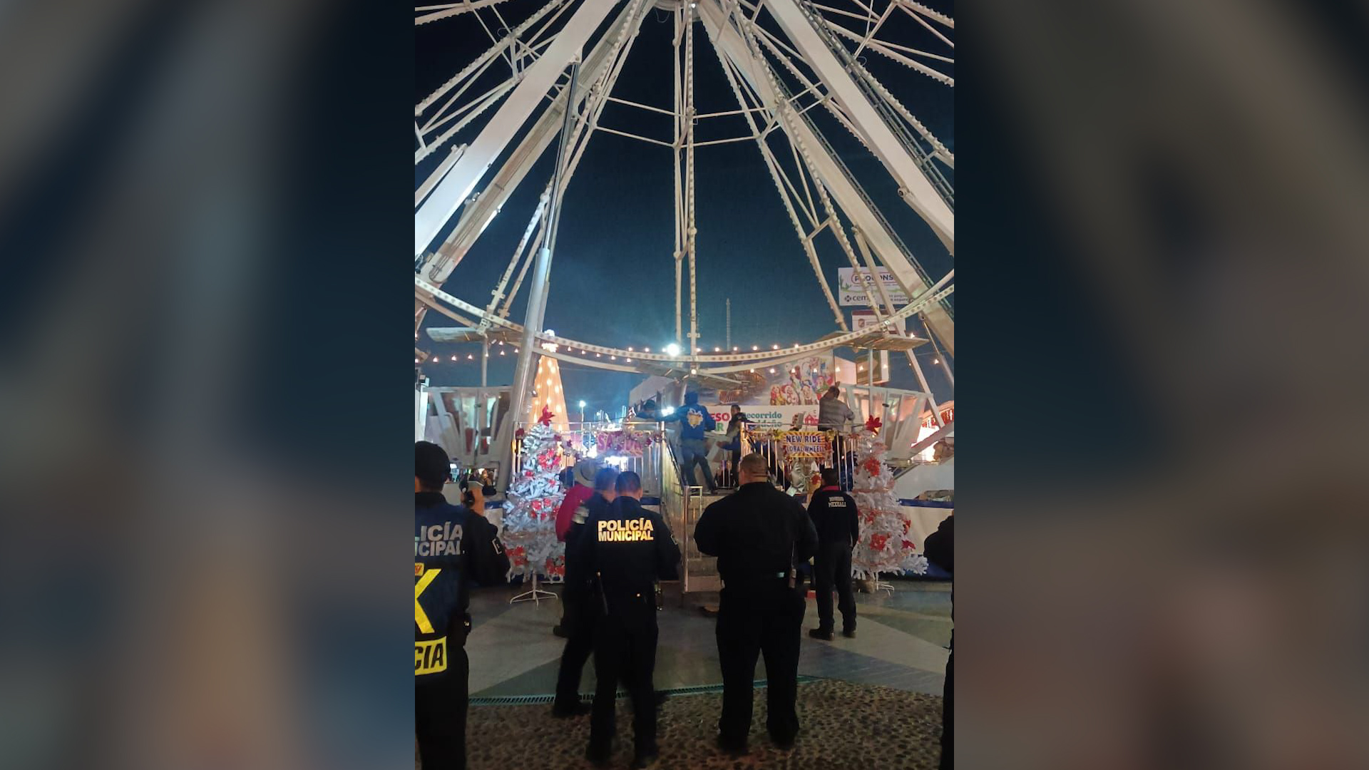 MEXICALI.- Un corte externo en el suministro de energía eléctrica registrado la noche del domingo 14 de diciembre afectó el funcionamiento de varias atracciones en la Villa Navideña instalada en el recinto FEX, incluida la rueda de la fortuna ubicada en el acceso principal.