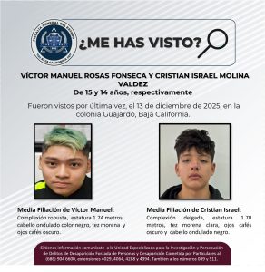 La fiscalía pide a la ciudadanía que en dado caso de tener información sobre el posible paradero de los menores, comunicarse al 911, 089 o al 6869044100 ext 4029, 4064, 4288 y 4394.