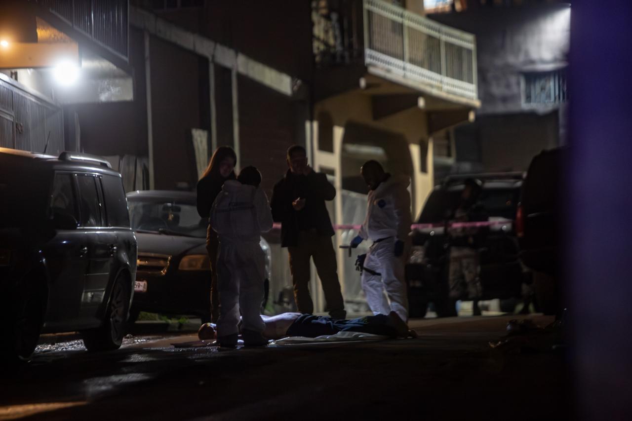 Al arribar al lugar, localizaron a un hombre de entre 40 y 45 años de edad, vestido con ropa oscura, tendido en medio del carril de circulación, con múltiples impactos de bala en el cuerpo y la cabeza.