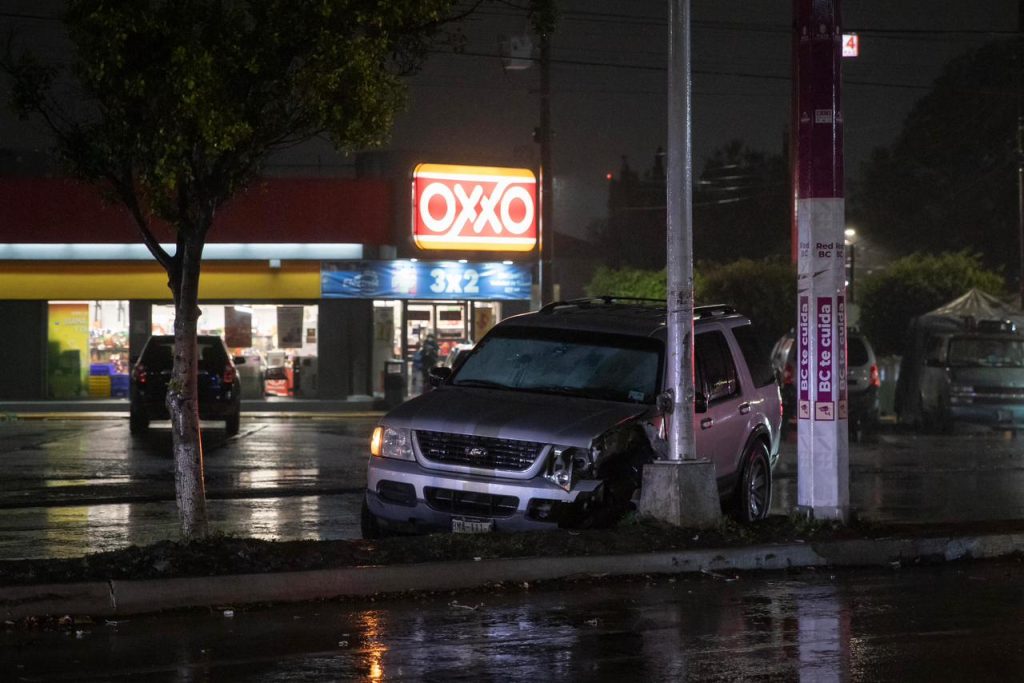 TIJUANA.-Tras las precipitaciones registradas durante la noche del viernes, un accidente se registró cuando una joven perdió el control del vehículo que conducía y terminó impactándose contra un poste que se encontraba en medio de un camellón.