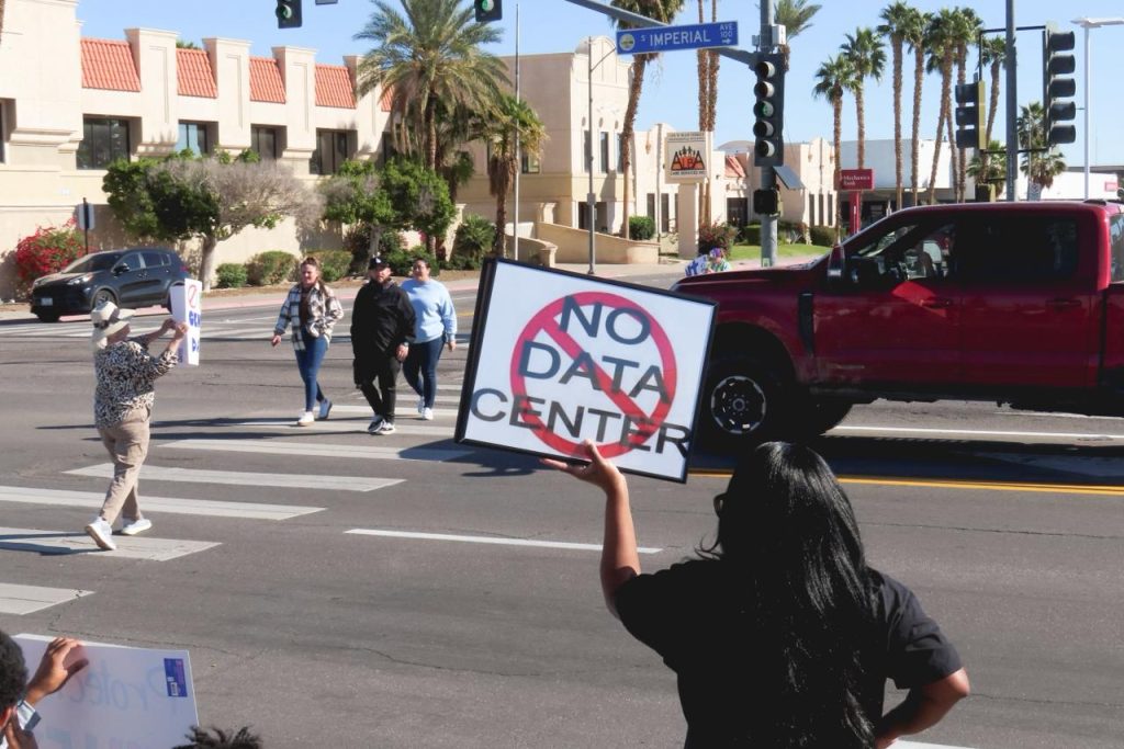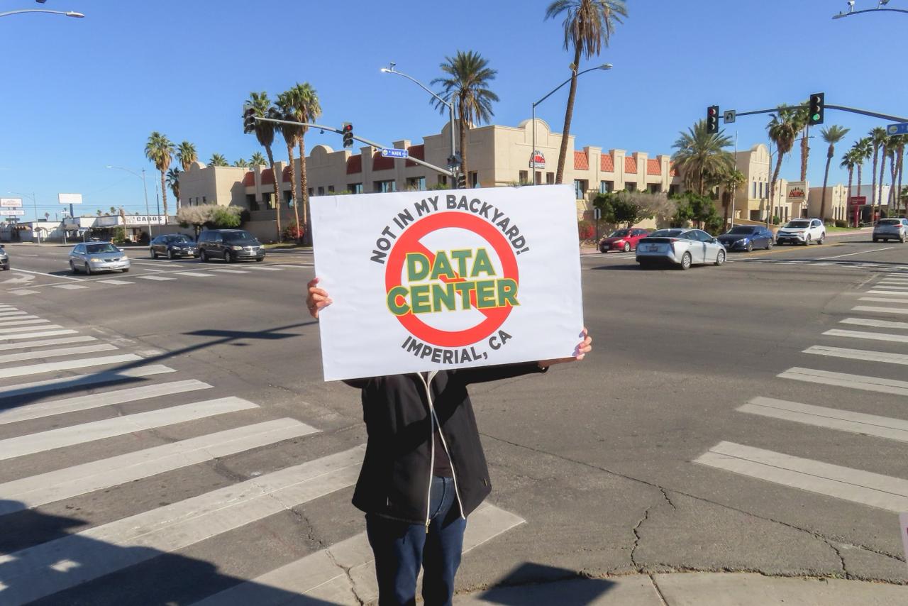 VALLE IMPERIAL.-Decenas de habitantes del Valle Imperial se dieron cita sobre Imperial Ave. & Main St, en el Centro, California, oponiéndose a la construcción de un Centro de Datos (Imperial Valley Center) que denuncian es impulsado de manera no regulada y que incumple con requerimientos ambientales, amenazando los recursos del entorno dentro del condado.