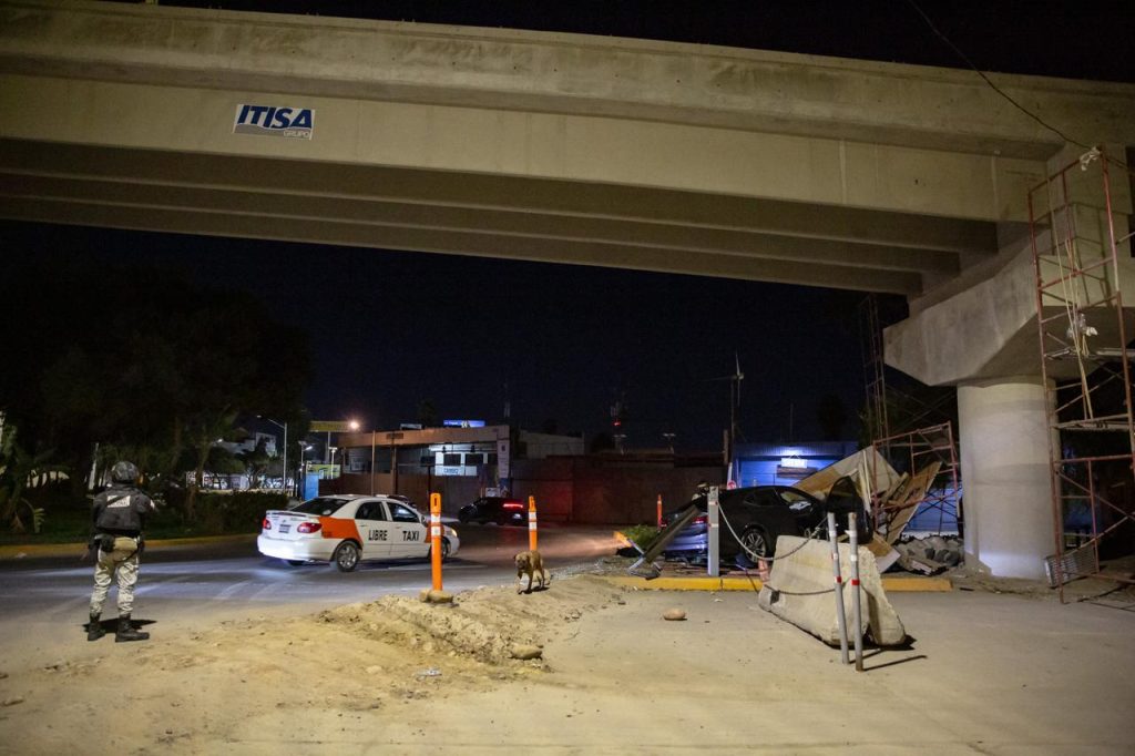 TIJUANA.-Un automóvil se impactó contra una estructura en construcción del Viaducto Elevado, sobre la carretera al Aeropuerto, a la altura de la colonia Libertad.