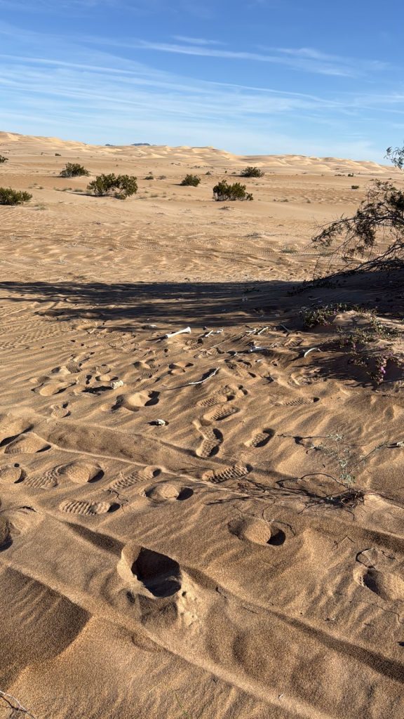 Las manchas de vegetación y la ruptura de las dunas no son paisaje: son huellas del subsuelo.