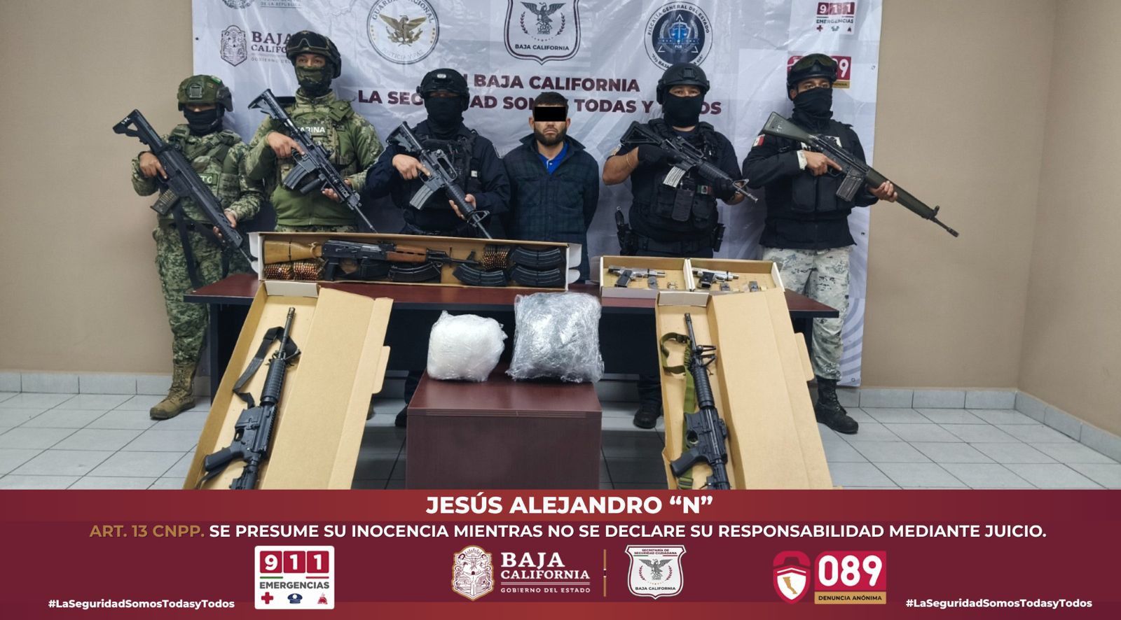 ASEGURAN ARSENAL, DROGA Y VEHÍCULO CON REPORTE DE ROBO DURANTE OPERATIVO “SAN QUINTÍN SEGURO”; UN HOMBRE FUE DETENIDO