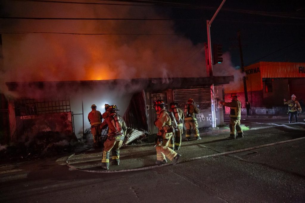 TIJUANA.-Un incendio registrado la noche del viernes consumió dos locales comerciales ubicados en la colonia 20 de Noviembre, pese a los esfuerzos de elementos del Cuerpo de Bombero.