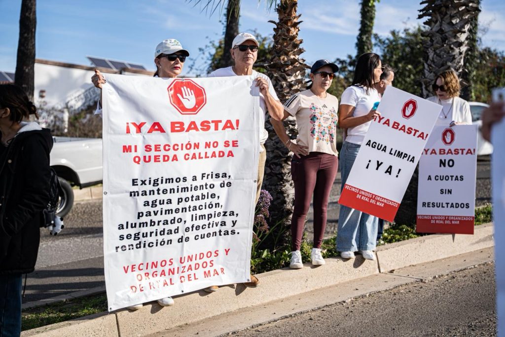 TIJUANA.-Vecinos del fraccionamiento Real del Mar se manifestaron en contra de la administración de Frisa, a fin de exigir mejoras en los servicios básicos del desarrollo, al denunciar mala calidad del agua potable, deficiencias en el drenaje y falta de alumbrado público, entre otras problemáticas.