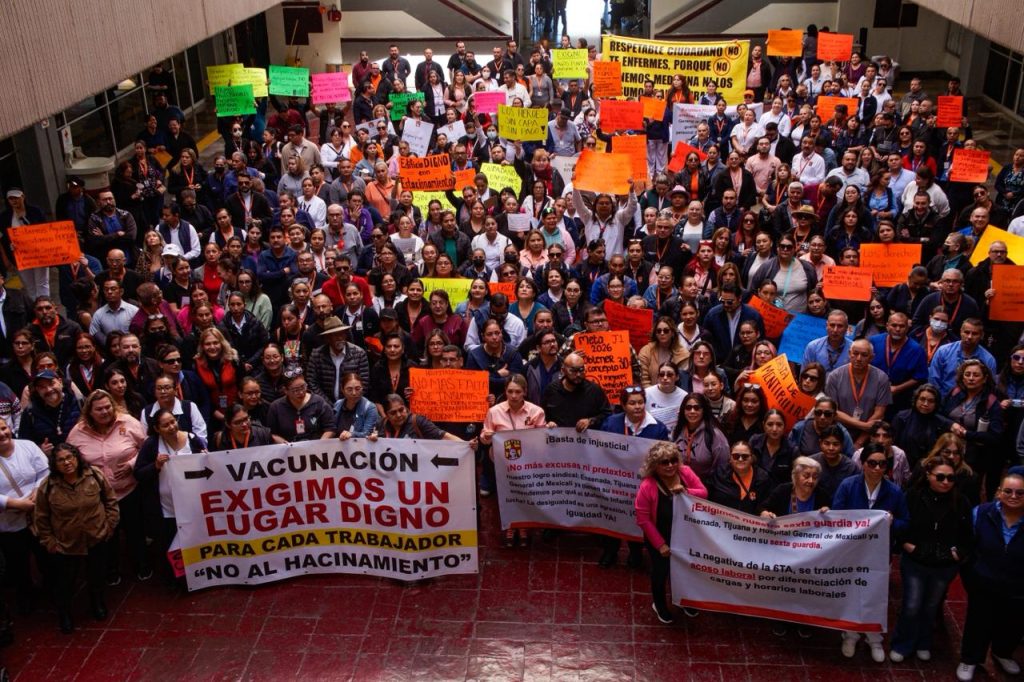TIJUANA.-Trabajadores del Sindicato de Salud en Baja California se manifestaron la mañana de este lunes en las instalaciones del edificio del Poder Ejecutivo, en Mexicali, para exigir el pago oportuno de sus salarios y el cumplimiento de acuerdos previamente establecidos con autoridades estatales.