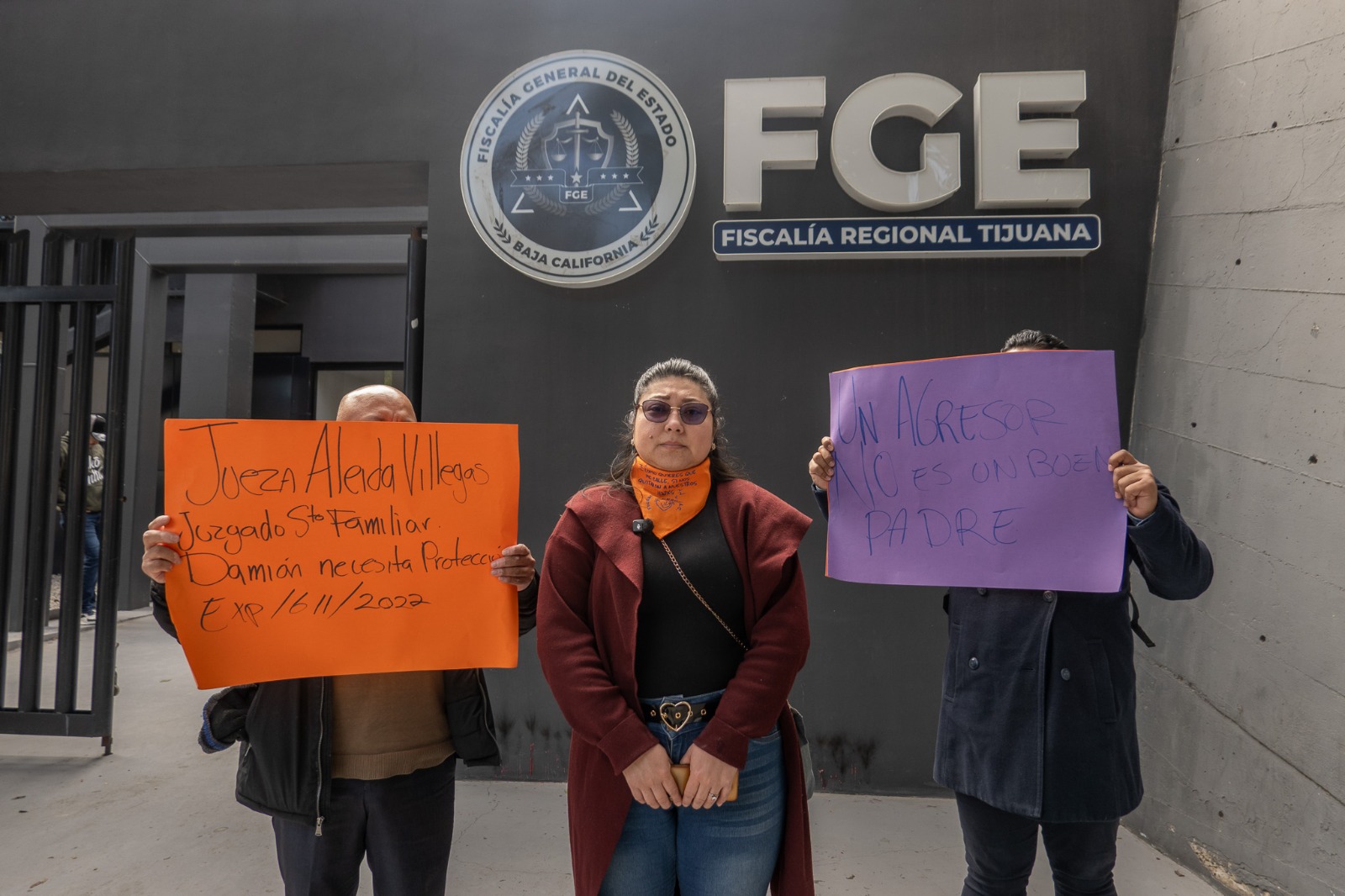 TIJUANA.-Sayuri Arrevillaga, sobreviviente de violencia vicaria, acudió este lunes a las instalaciones de la Fiscalía General del Estado (FGE), en la Zona Río, para exigir justicia y una intervención inmediata por la seguridad de su hijo, Damián Alessandro, de 15 años de edad, quien asegura también es víctima de violencia por parte de su padre.