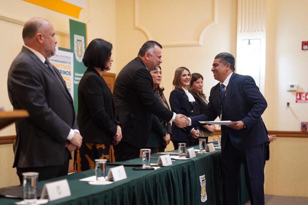 Señaló que “no es solamente un nombramiento lo que hoy celebramos, es la certeza laboral, la estabilidad profesional y el reconocimiento al mérito de quienes han dedicado años de esfuerzo, estudio y compromiso a la Universidad Autónoma de Baja California”.