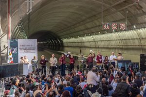 Durante su mensaje, la Presidenta reconoció el trabajo de los elementos de la Secretaría de la Defensa Nacional (Sedena) y de todos los que participaron en la construcción de la obra.