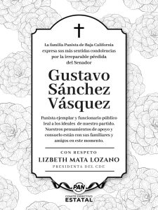 MEXICALI.- El Partido Acción Nacional (PAN) informó sobre el fallecimiento del Senador Gustavo Sánchez, quien ejerció el cargo de alcalde de Mexicali, Síndico Procurador y Diputado Local.