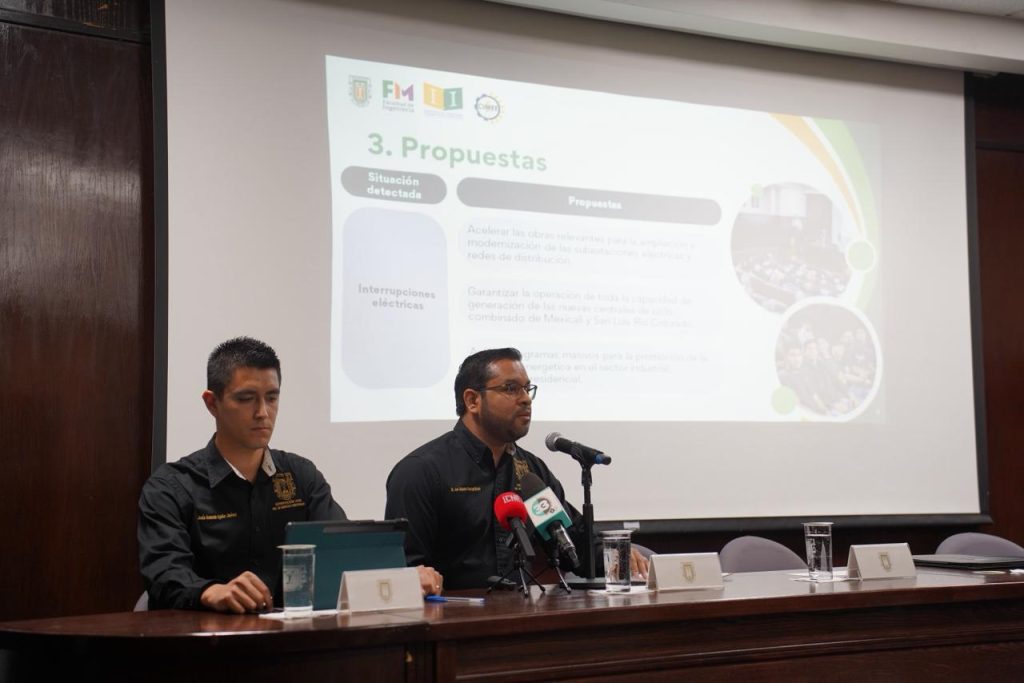 Las propuestas técnicas y estratégicas fueron presentadas por el profesor-investigador de la FIM, doctor José Alejandro Suástegui Macías, quien explicó que participaron más de 20 especialistas. Entre los principales resultados, destacó la necesidad de acelerar la ampliación y modernización de subestaciones y redes de distribución, garantizar la operación plena de las nuevas centrales de ciclo combinado de Mexicali y San Luis Río Colorado, y aplicar programas masivos de eficiencia energética en los sectores industrial, comercial y residencial. Asimismo, se planteó actualizar y vigilar la aplicación de normativas constructivas, promover el Código de Red en usuarios de alta demanda y diversificar la matriz energética del estado mediante energías limpias.