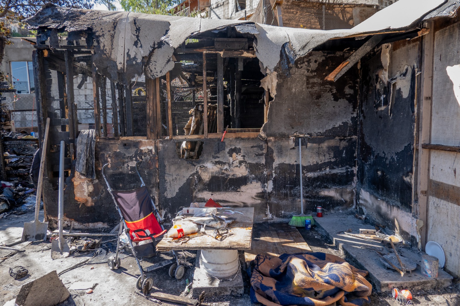 TIJUANA.-Un incendio registrado la tarde del pasado martes 3 de febrero dejó a una familia sin vivienda ni pertenencias en la colonia Camino Verde de Tijuana. La afectada, Lourdes Hernández, de 46 años, relató que el siniestro consumió por completo su casa ubicada sobre la calle Río Verde.