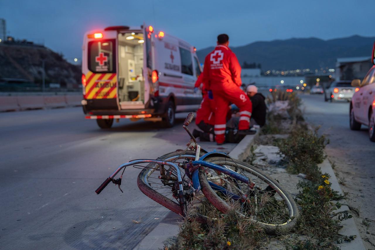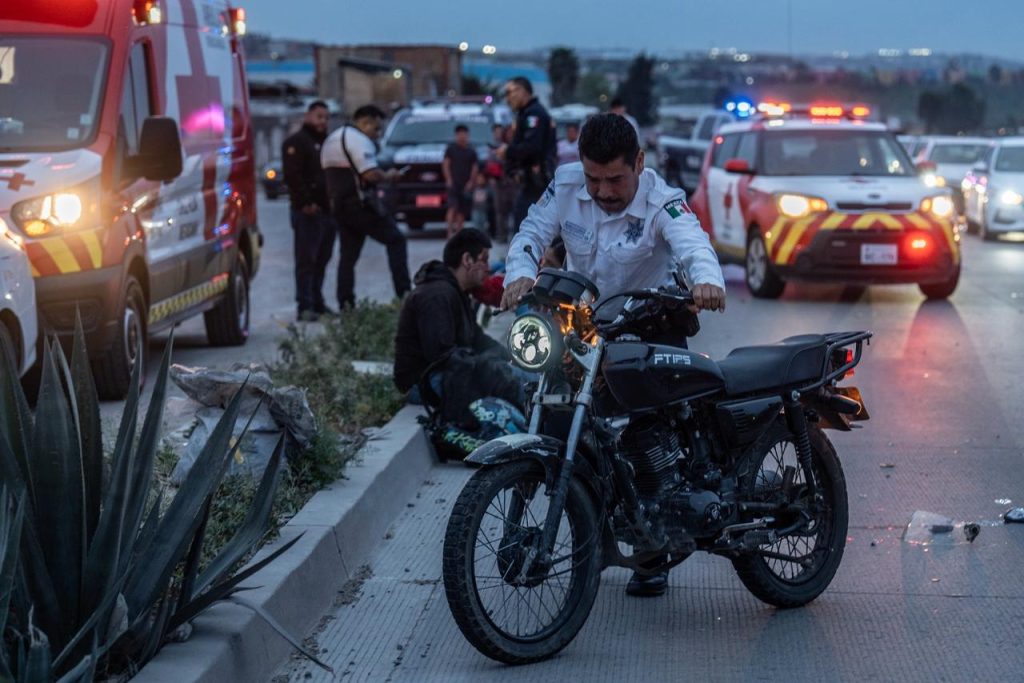 TIJUANA.-Un motociclista y un ciclista resultaron lesionados tras verse involucrados en un fuerte accidente de tránsito registrado en la Vía Rápida Alamar.