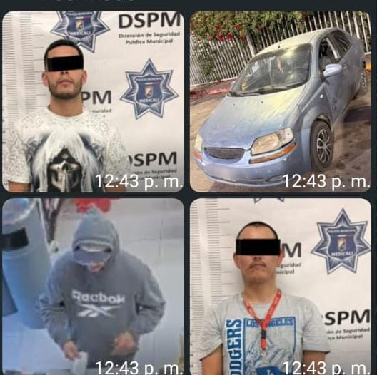 Mexicali, Baja California, a 11 de febrero de 2026. Derivado de un recorrido de vigilancia preventivo agentes de la Policía Municipal de Mexicali aseguraron a dos hombres que presuntamente están involucrados en al menos 09 robos con violencia a distintas sucursales de la cadena comercial Oxxo en lo que va del año.