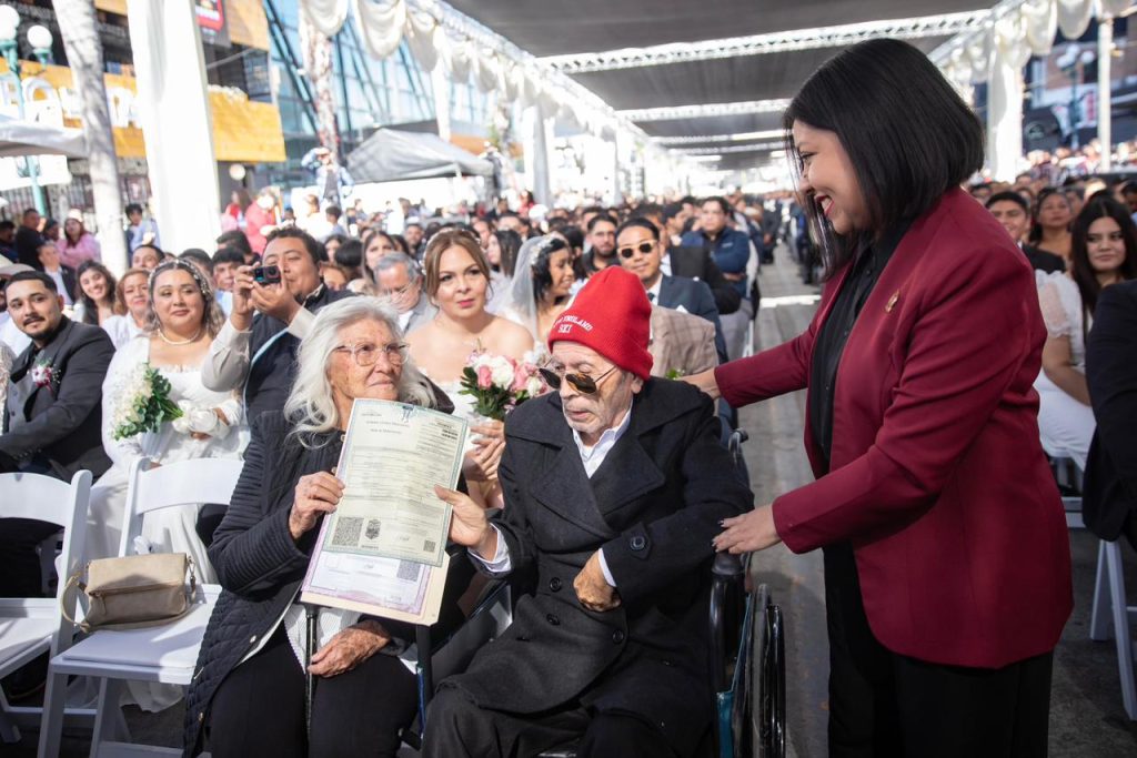 En la Zona Centro cientos de parejas dijeron “Sí, acepto” en un evento encabezado por el alcalde Ismael Burgueño, quien dirigió un mensaje a los recién casados, exhortándolos a mantener la comunicación, la tolerancia y el respeto mutuo a lo largo de su vida en común. El edil destacó la importancia de “amarse y quererse todos los días como si fuera el primero”, al recordarles el significado del compromiso adquirido.