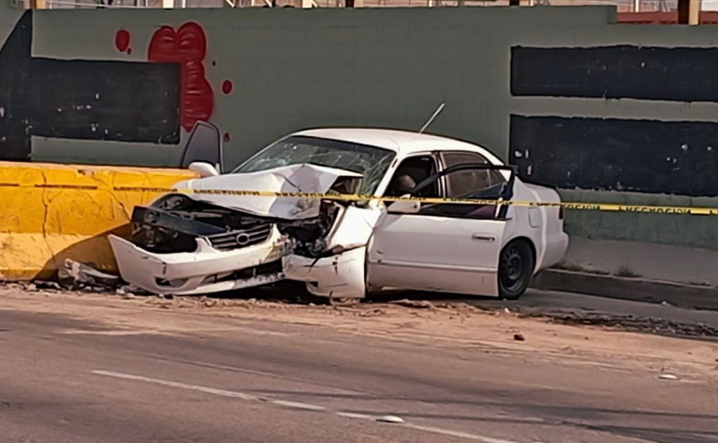 TIJUANA.-Esta mañana se registró un fatal accidente sobre la Carretera Aeropuerto de Tijuana, frente a los campos de fútbol, donde un conductor perdió la vida tras impactar su vehículo contra un muro de contención que dirige a los automovilistas hacia la línea Ready Lane.