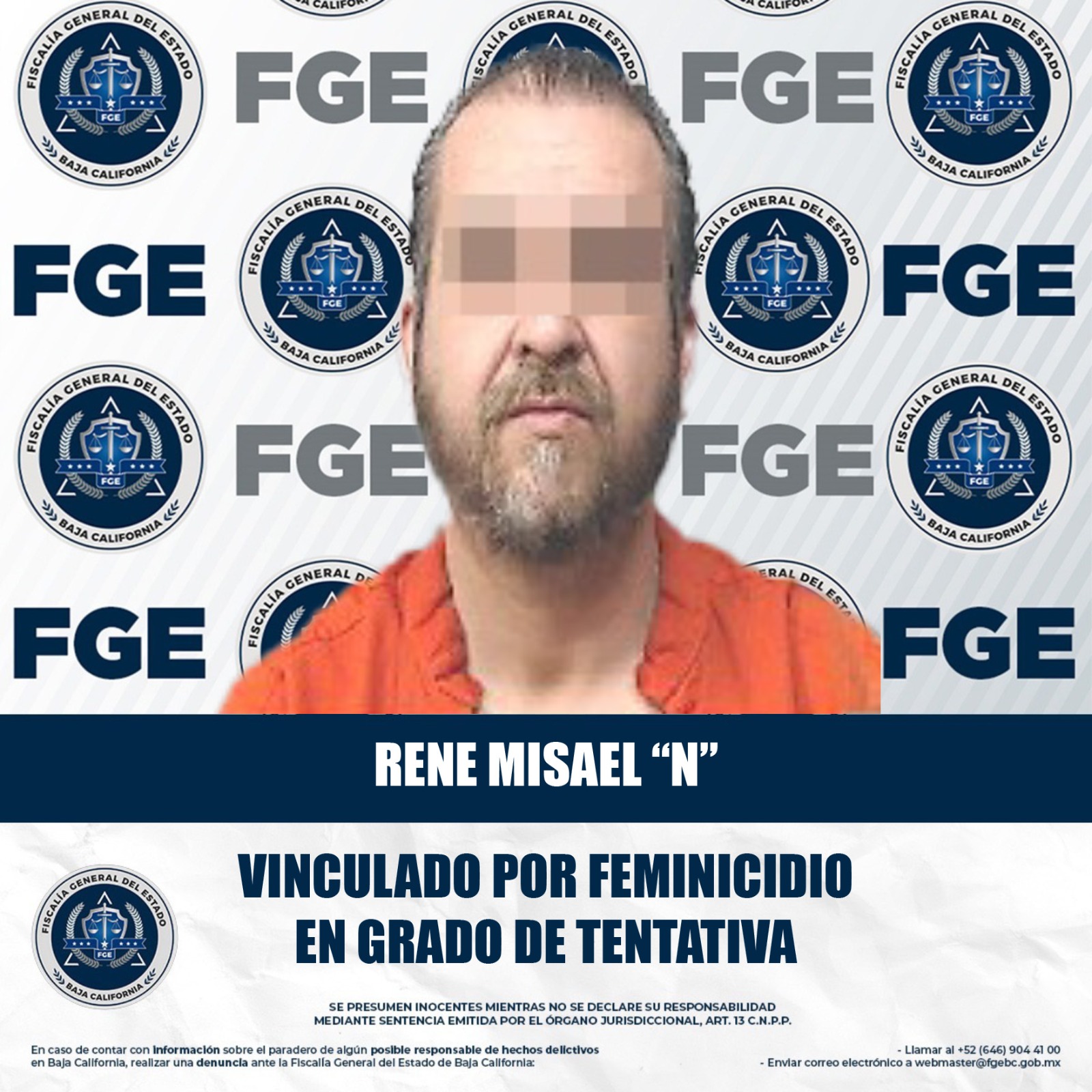 MEXICALI, BAJA CALIFORNIA, A 15 DE FEBRERO DE 2026.– La Fiscalía General del Estado, a través de la Fiscalía Especializada en Delitos Contra las Mujeres por Razón de Género, logró la vinculación a proceso de René Misael “N”, imputado por el delito de feminicidio en grado de tentativa.