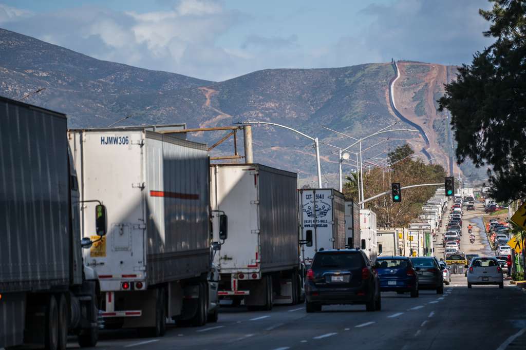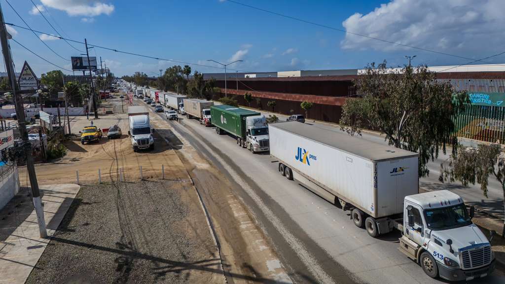 TIJUANA.-La caída del sistema aduanal a nivel nacional durante la mañana de este miércoles 18 de febrero generó extensas filas de tractocamiones que se observaron en la zona de Otay, y que se prolongan por varios kilómetros hasta la carretera Aeropuerto.