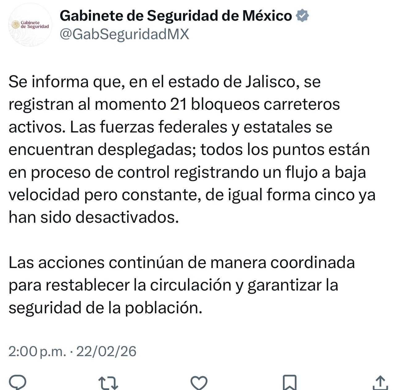 Tras el abatimiento del líder de un cartel Jalisco Nueva Generación, apodado El Mencho, y las noticias relacionadas con su muerte, autoridades estatales han informado el endurecimiento de la vigilancia en todo el estado.