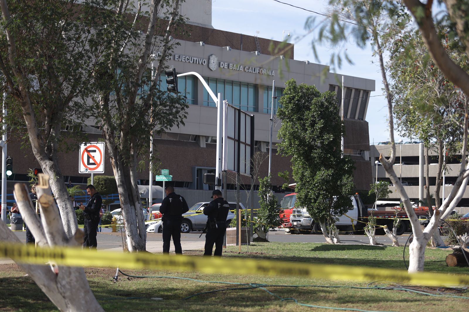 MEXICALI.-Dejan caja frente a CESPM; causa movilizaciones policiacas y de diferentes departamentos de seguridad. La zona ha sido acordonada por autoridades y limitado el acceso a peatones en el área del Centro Cívico.