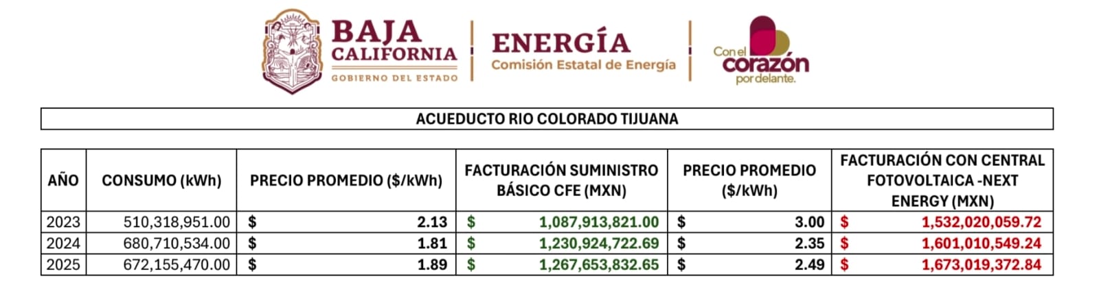 La energía comprada a la planta de Next Energy, lo cual no se hizo, era para abastecer al acueducto Río Colorado, que es para llevar agua a la zona Costa de Baja California.