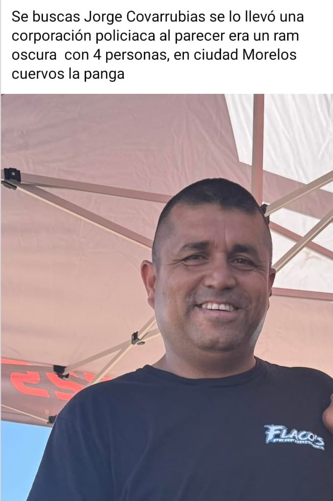 MEXICALI.-A las 22:05 horas del martes fue desaparecido Jorge Covarrubias en Ciudad Morelos, y según testigos estarían implicados 4 elementos policíacos.