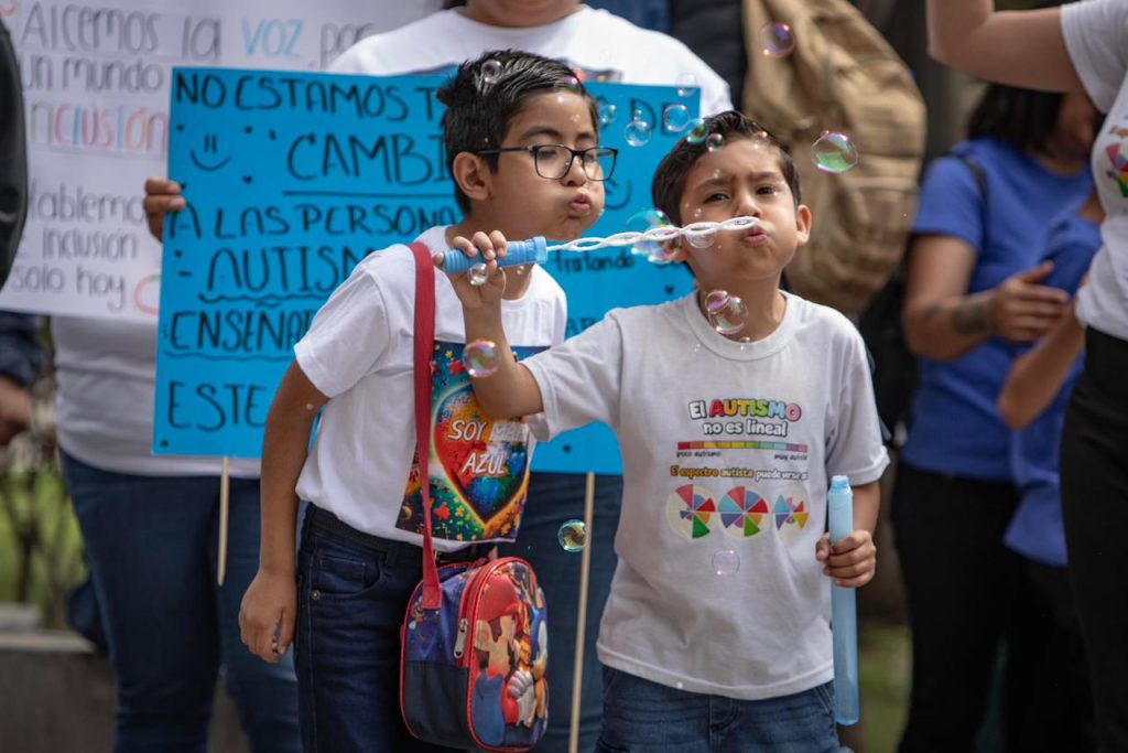 Durante la movilización, los participantes portaron pancartas con mensajes como “El futuro será inclusivo”, “La diversidad nos hace únicos, el respeto nos hace humanos” y “¿Los adultos que exigen que los niños regulen su conducta ya dominan la suya?”, en alusión a los constantes juicios sociales hacia menores con autismo.