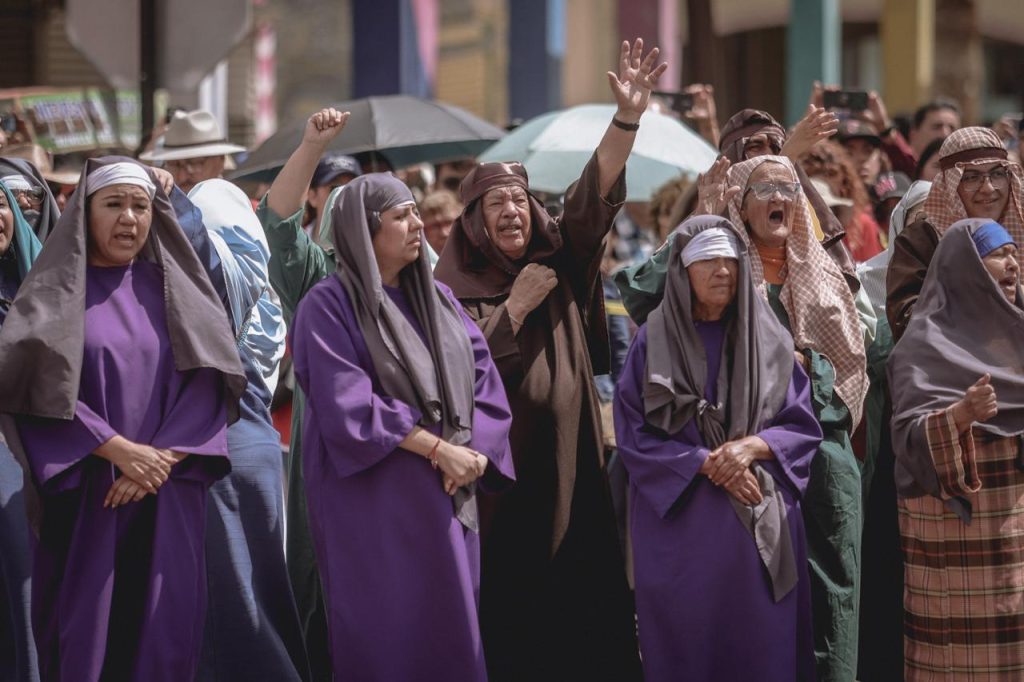Fue a partir de las 9 de la mañana que dio inicio esta representación de la crucifixión de Jesús, en donde cientos de fieles acompañaron a los participantes en todo el recorrido que comprendió la primera sección del Centro Histórico.