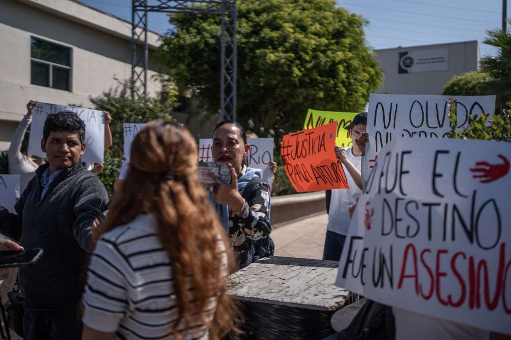 PLAYAS DE ROSARITO.-Familiares, amigos y músicos de un integrante del grupo “Reacción”, asesinado hace unos días durante una fiesta privada, se manifestaron este miércoles afuera del Centro de Gobierno del Estado en Playas de Rosarito, donde exigieron justicia y que las autoridades den a conocer la identidad del presunto responsable.