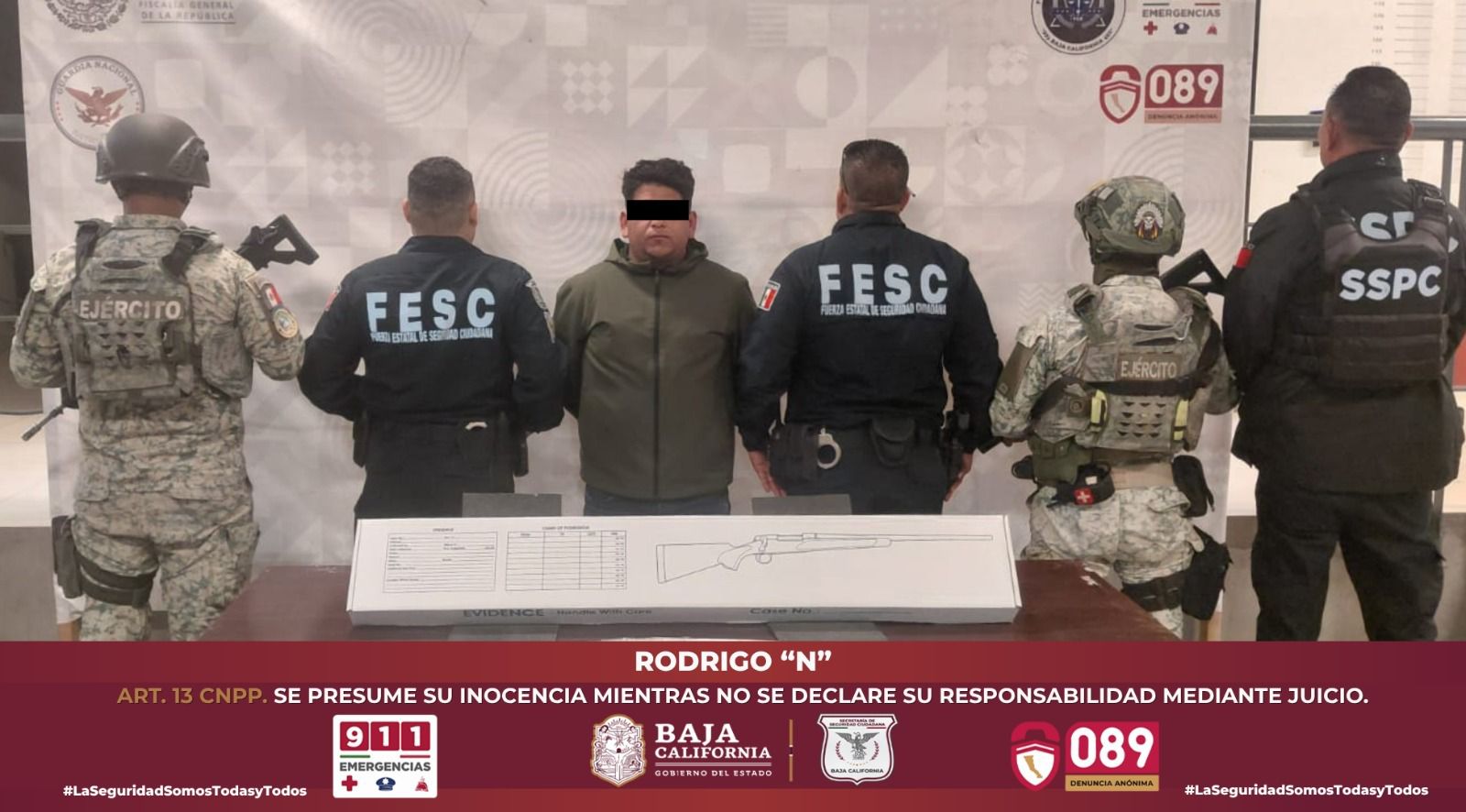 TIJUANA.- Luego de interceptar un vehículo que circulaba a alta velocidad por calles de la ciudad fronteriza, agentes de la Secretaría de Seguridad Ciudadana de Baja California (SSCBC), lograron inhibir una situación de riesgo para terceros al asegurar un fusil de asalto y detener al conductor. El implicado fue turnado a la Fiscalía General de la República (FGR), autoridad con facultad para dictaminar su situación legal.