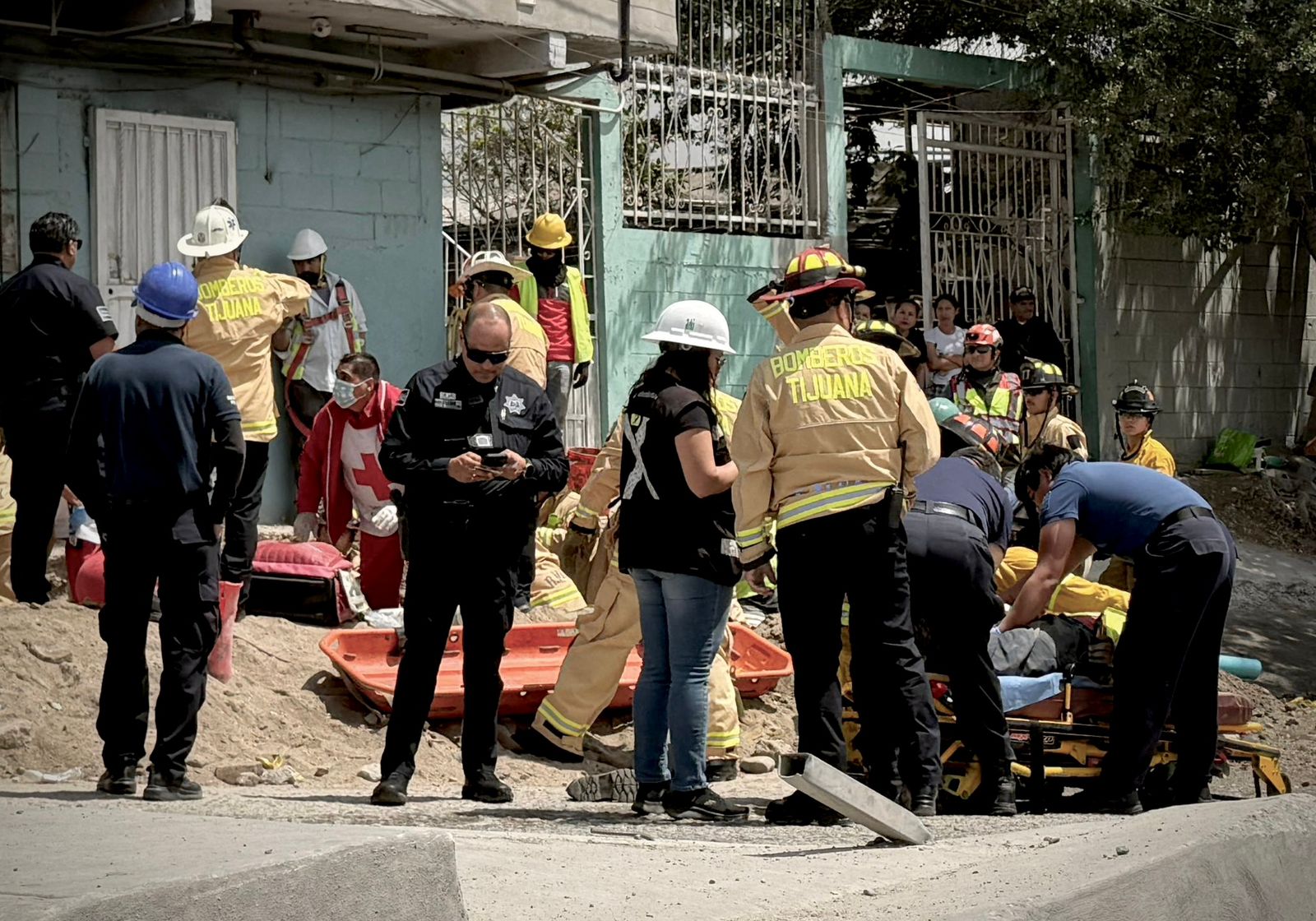 TIJUANA.-Dos trabajadores quedaron atrapados tras un colapso de tierra cuando estaban laborando en una zona de construcción sobre via rápida poniente y puente de las Américas a la altura de la colonia Buena Vista.