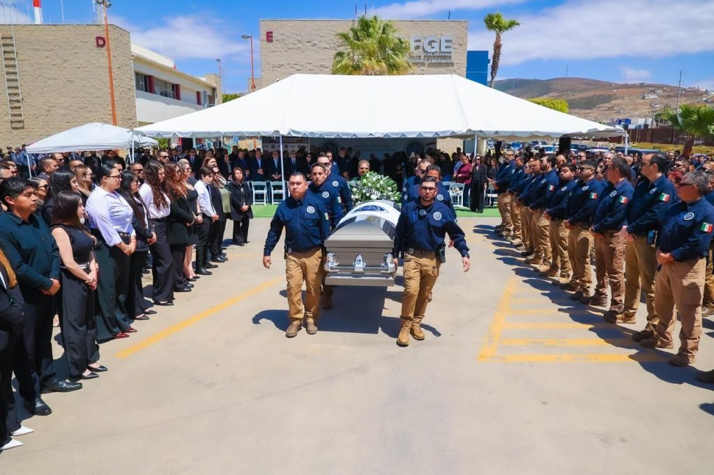 ENSENADA, BAJA CALIFORNIA, A 27 DE ABRIL DE 2026.- La Fiscalía General del Estado llevó a cabo una ceremonia de honras fúnebres en memoria del agente del Ministerio Público Ángel Pantoja Pantoja, quien destacó por su entrega, vocación de servicio y compromiso con la procuración de justicia en la región.